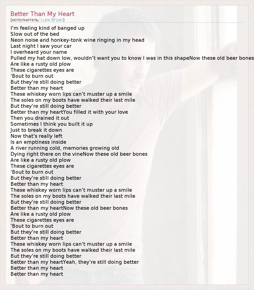 Better than my heartNow these old beer bones