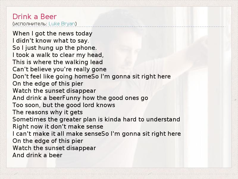 А как ты думаешь, о чем песня "Drink a Beer" ?
