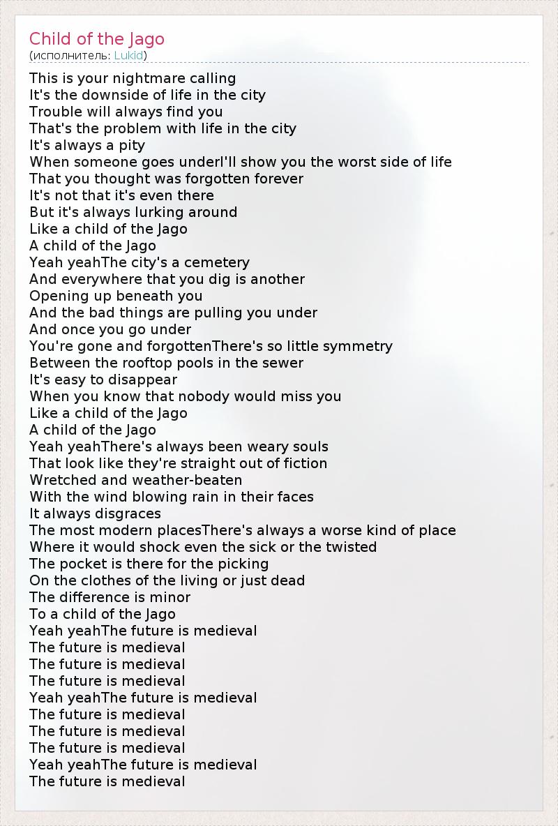 А как ты думаешь, о чем песня "Child of the Jago" ?