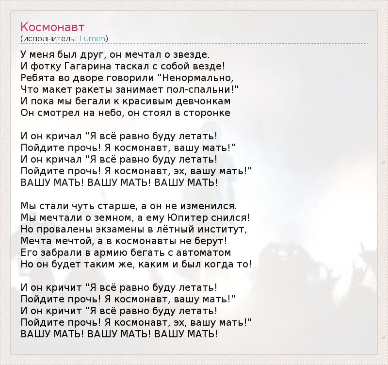 А как ты думаешь, о чем песня "Космонавт" ?