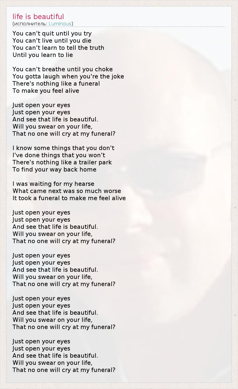 А как ты думаешь, о чем песня "life is beautiful" ?