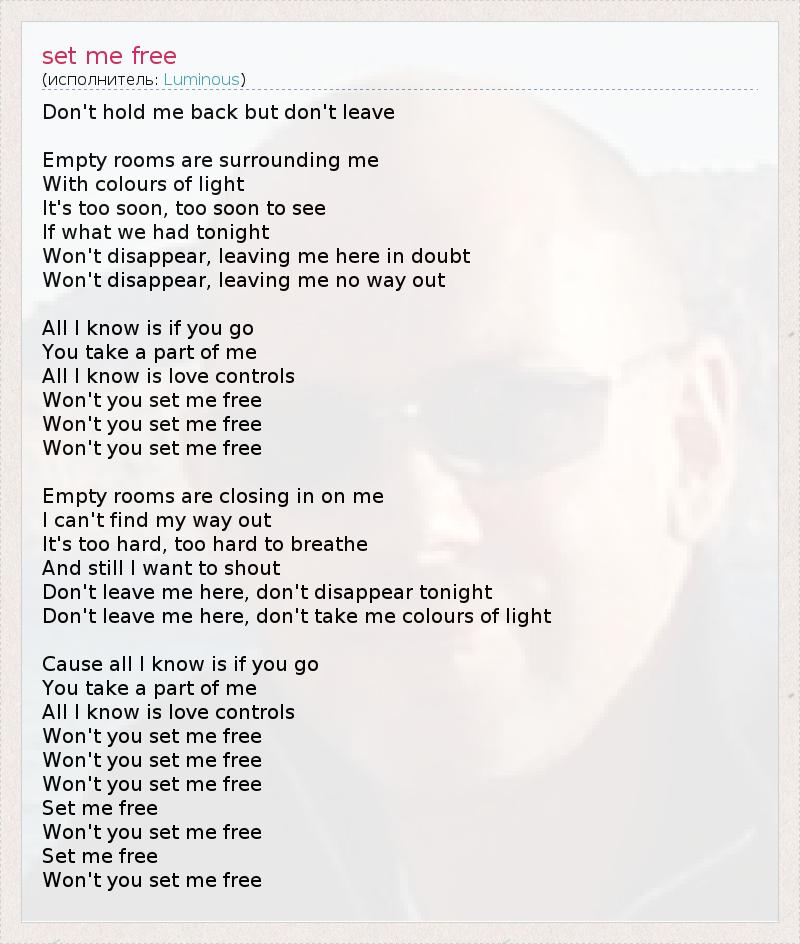 А как ты думаешь, о чем песня "set me free" ?