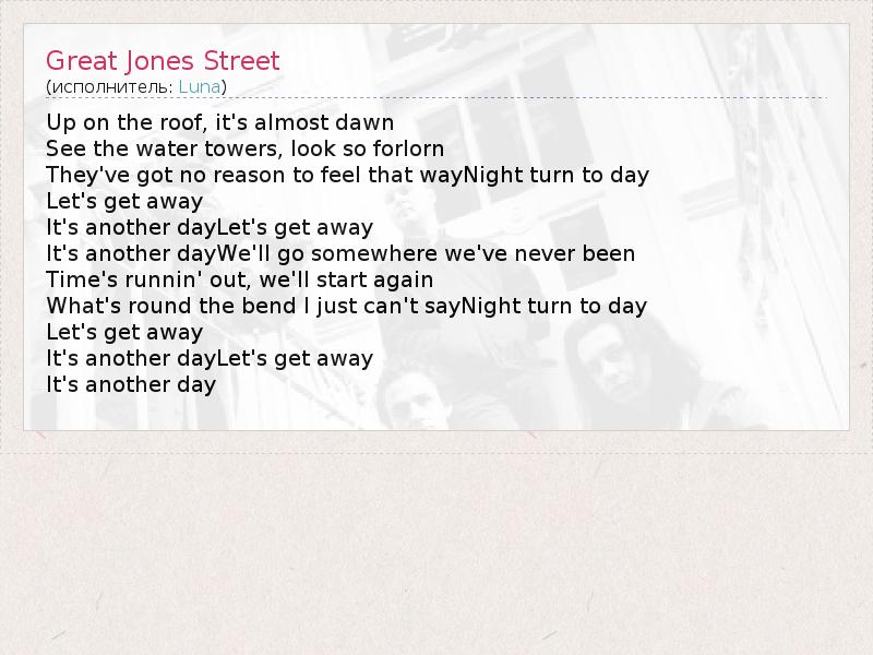ГлавнаяИсполнителиLunaGreat Jones Street