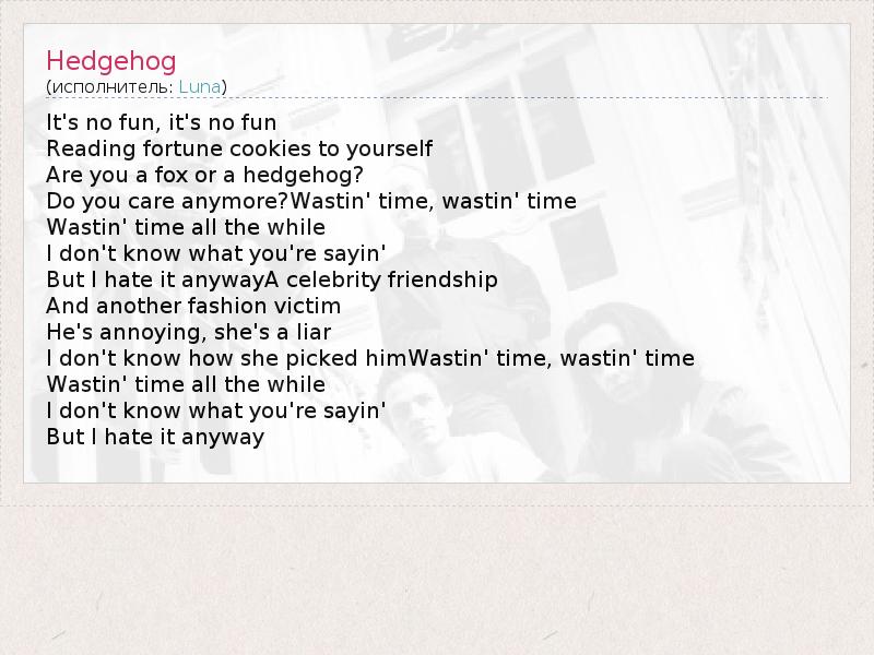 А как ты думаешь, о чем песня "Hedgehog" ?