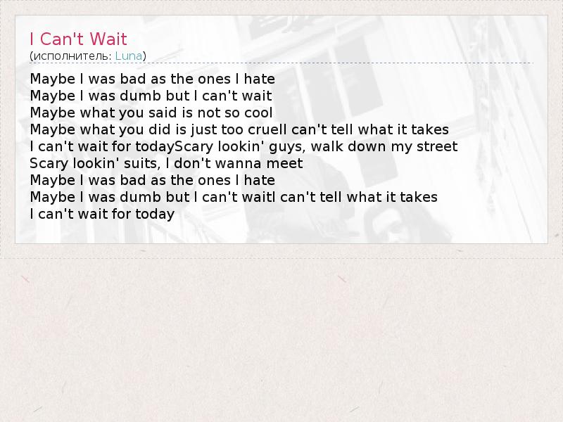 А как ты думаешь, о чем песня "I Can't Wait" ?
