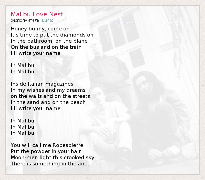 А как ты думаешь, о чем песня "Malibu Love Nest" ?