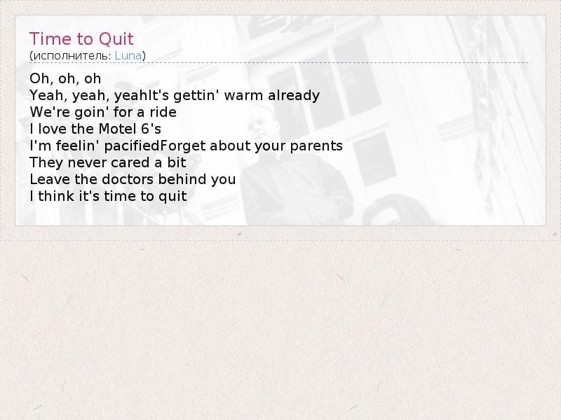 А как ты думаешь, о чем песня "Time to Quit" ?