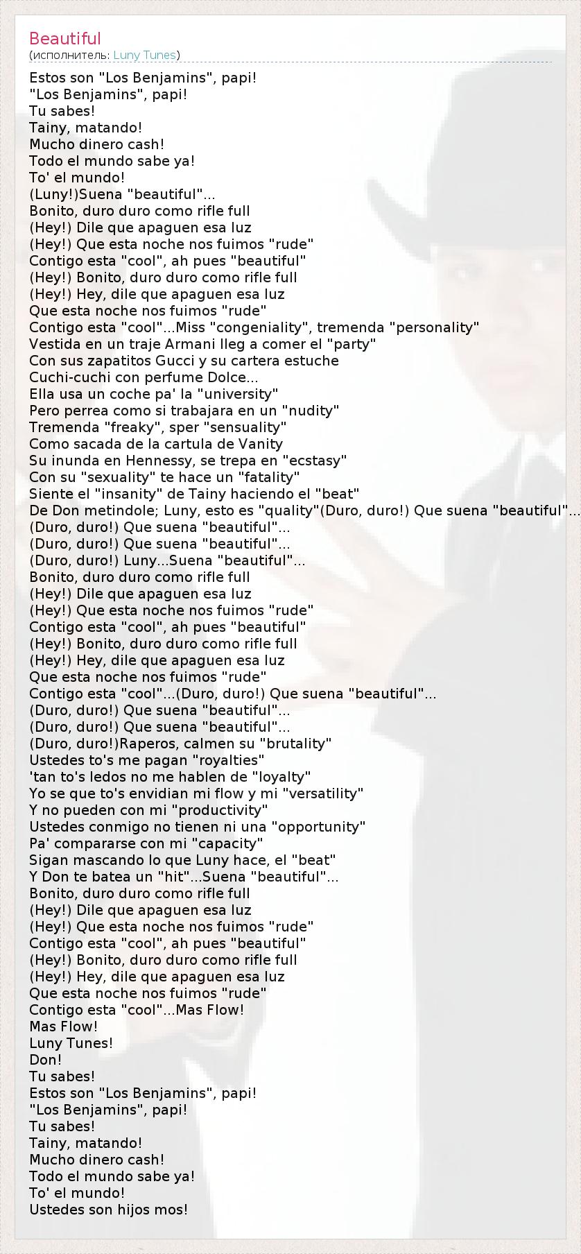 Contigo esta "cool"...(Duro, duro!) Que suena "beautiful"...
