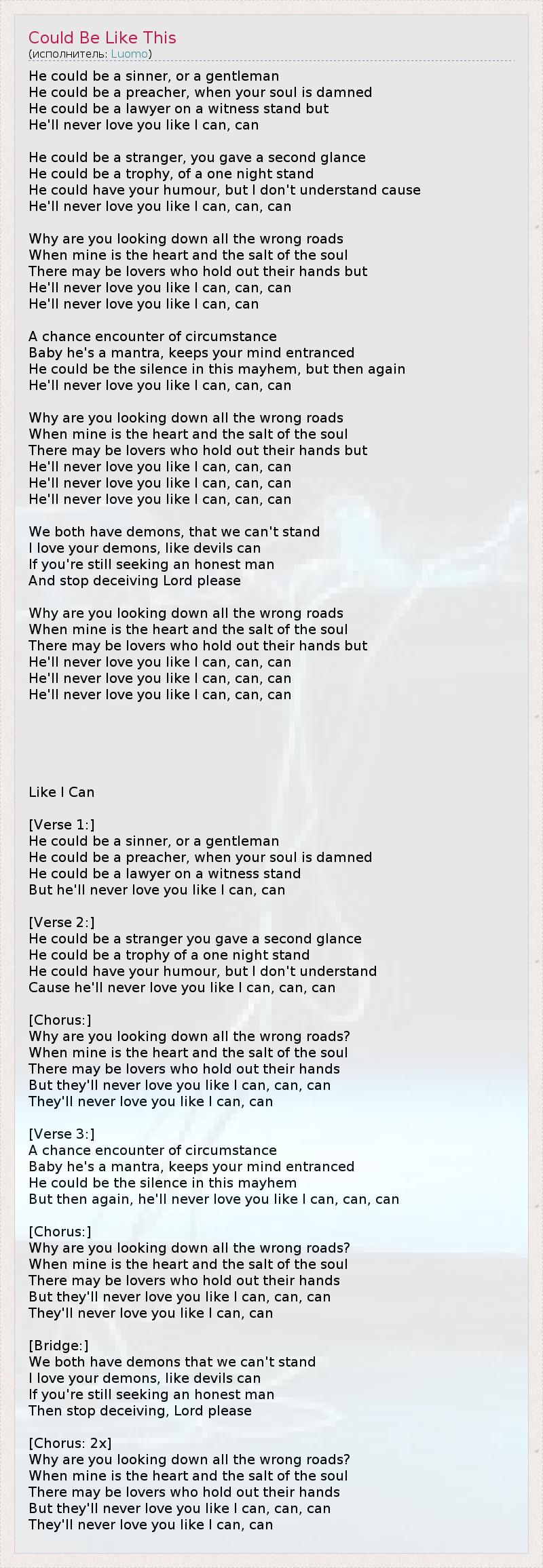 А как ты думаешь, о чем песня "Could Be Like This" ?