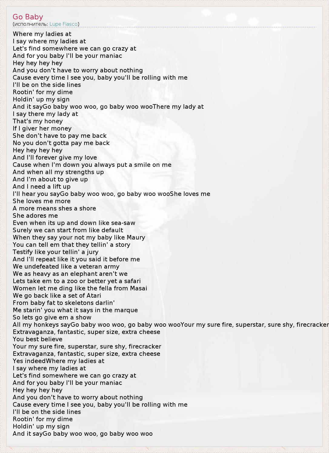 And it sayGo baby woo woo, go baby woo wooThere my lady at