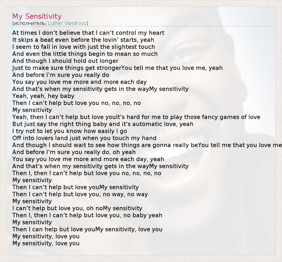 I can't help but love you, oh noMy sensitivity
