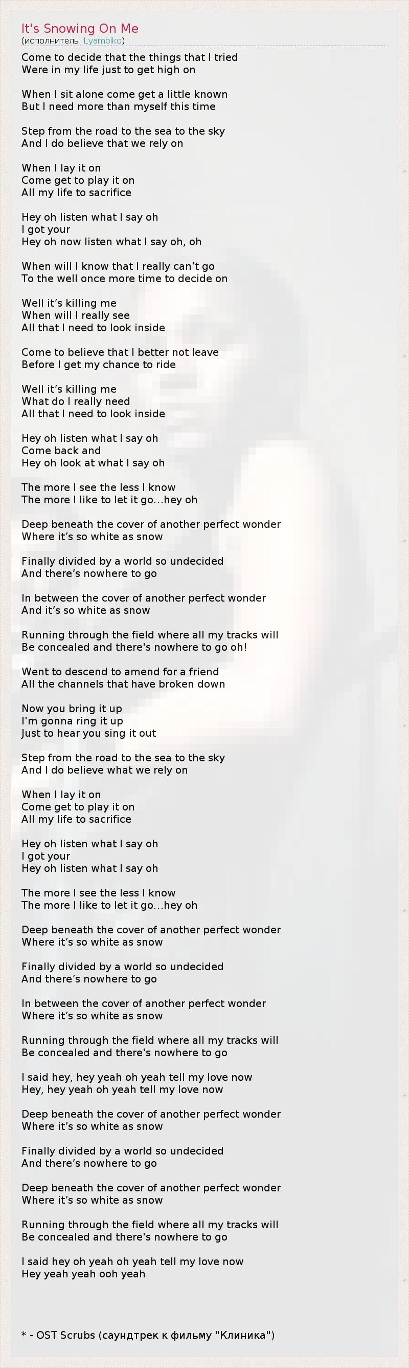 А как ты думаешь, о чем песня "It's Snowing On Me" ?