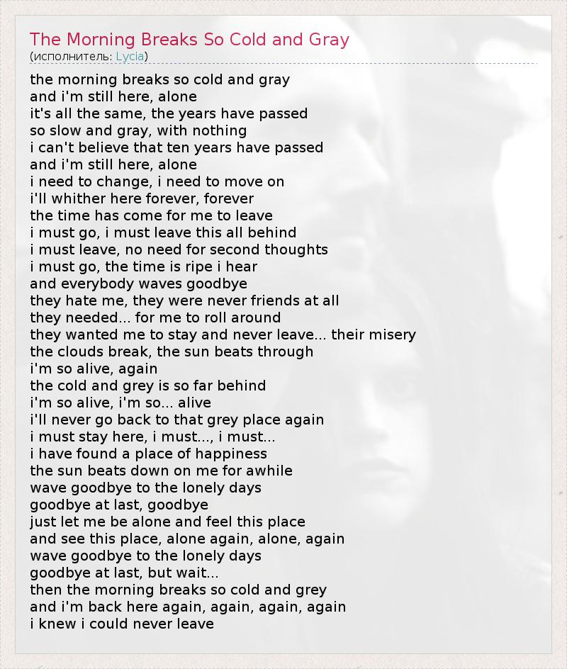 А как ты думаешь, о чем песня "The Morning Breaks So Cold and Gray" ?