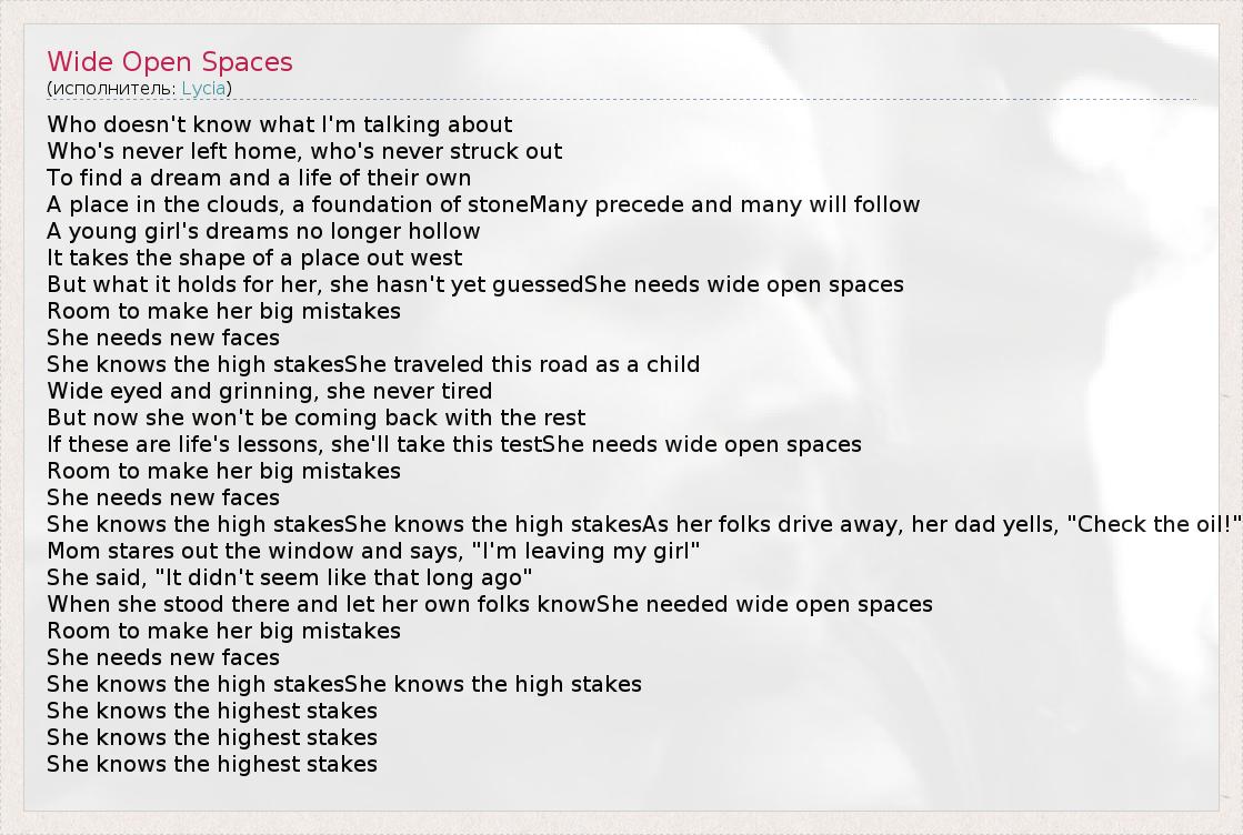 А как ты думаешь, о чем песня "Wide Open Spaces" ?