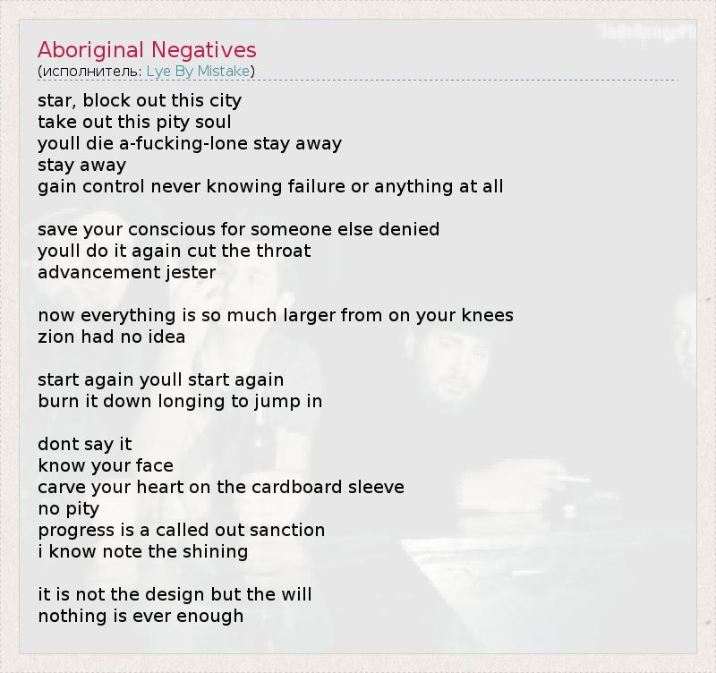 А как ты думаешь, о чем песня "Aboriginal Negatives" ?