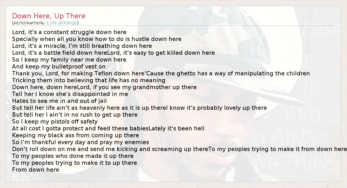 Don't roll down on me and send me kicking and screaming up thereTo my peoples trying to make it from down here