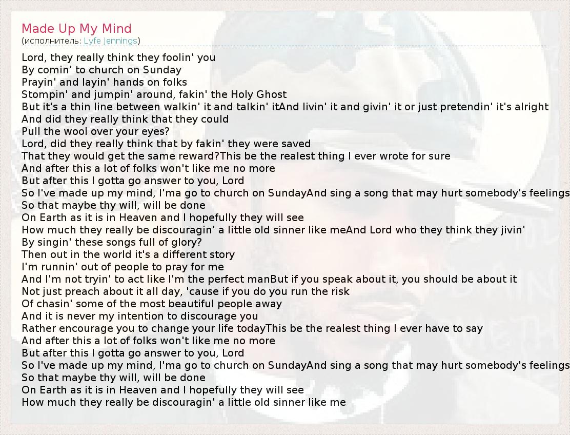 А как ты думаешь, о чем песня "Made Up My Mind" ?