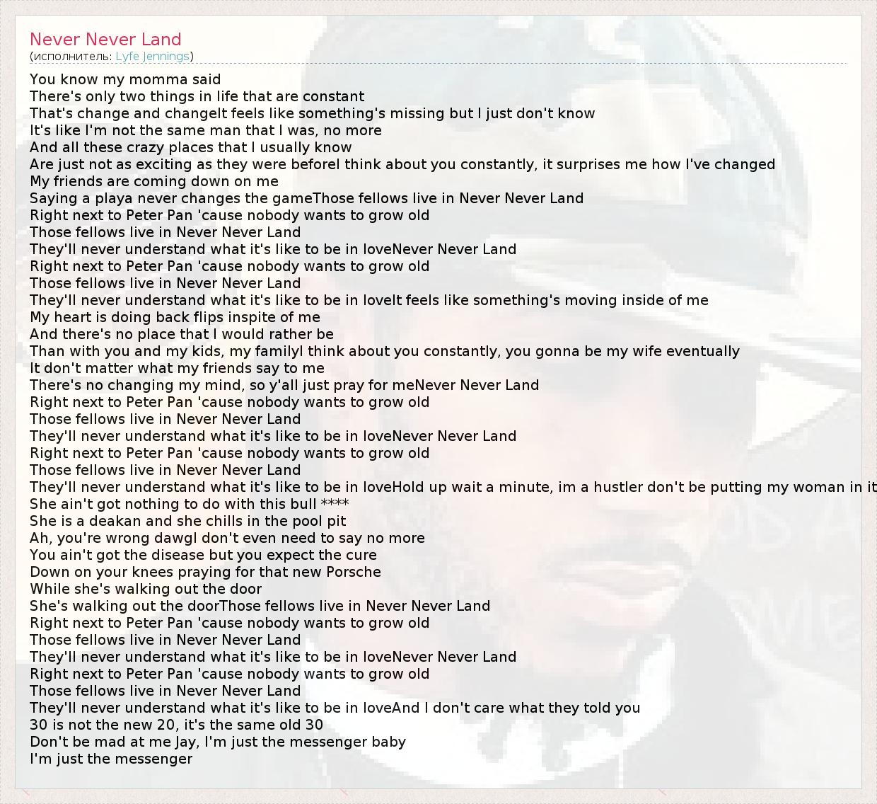 А как ты думаешь, о чем песня "Never Never Land" ?