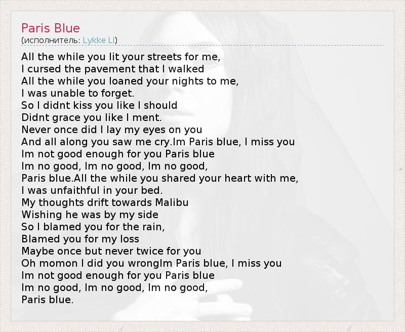 А как ты думаешь, о чем песня "Paris Blue" ?