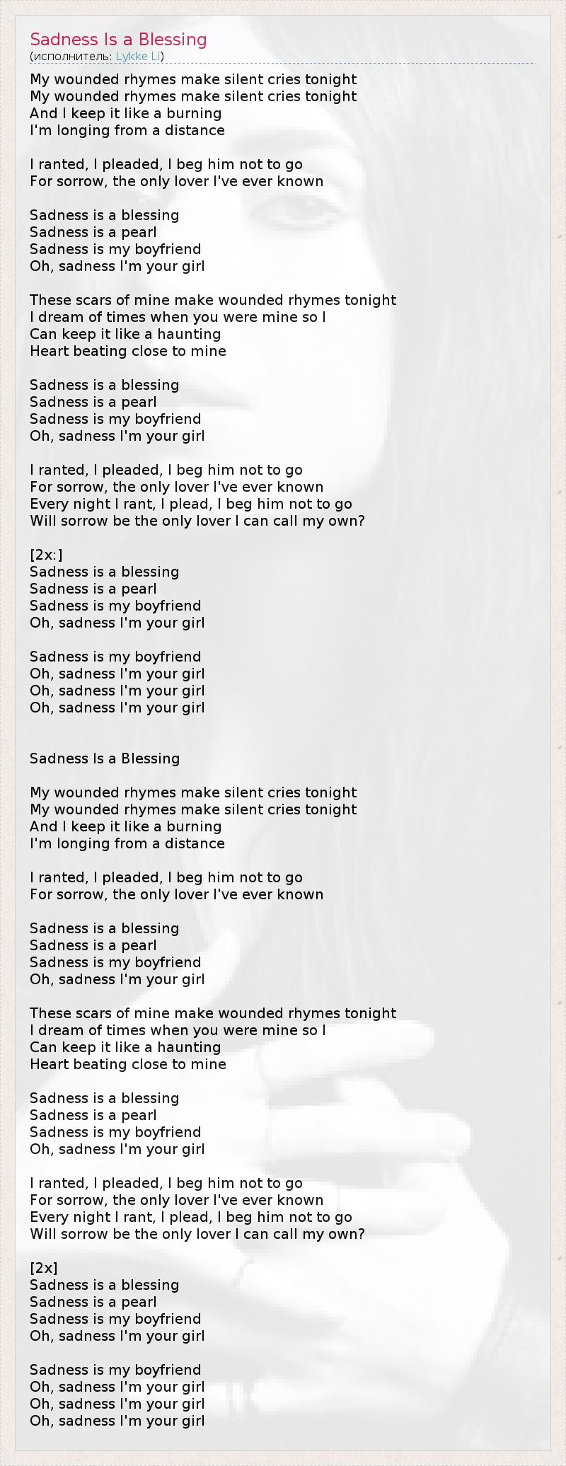 А как ты думаешь, о чем песня "Sadness Is a Blessing" ?