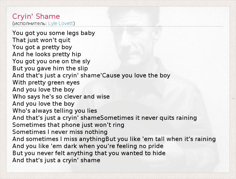 А как ты думаешь, о чем песня "Cryin' Shame" ?