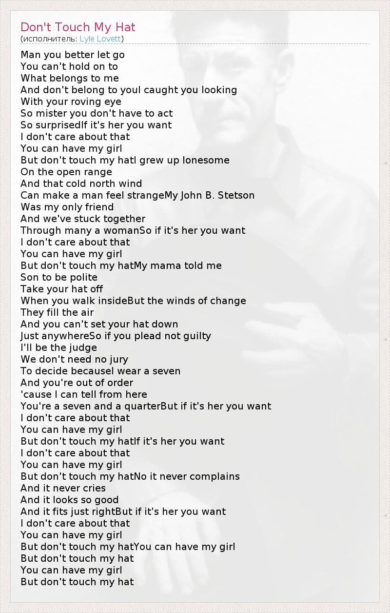А как ты думаешь, о чем песня "Don't Touch My Hat" ?