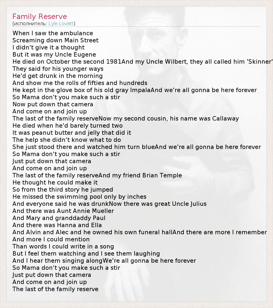 А как ты думаешь, о чем песня "Family Reserve" ?