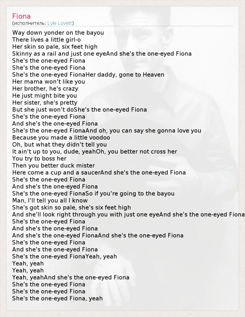 And she'll look right through you with just one eyeAnd she's the one-eyed Fiona
