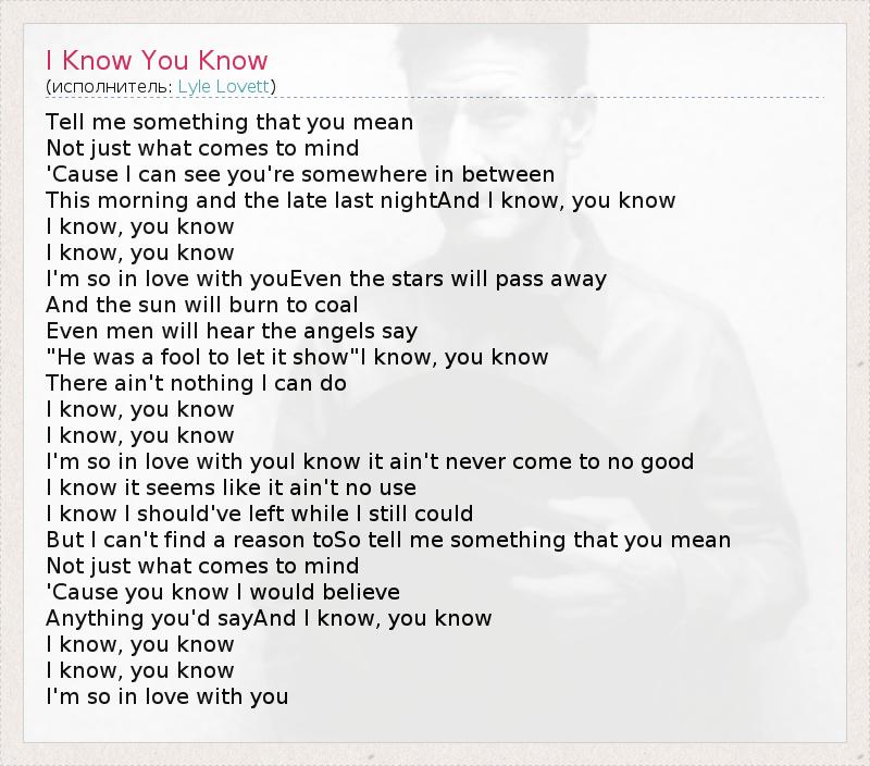 А как ты думаешь, о чем песня "I Know You Know" ?