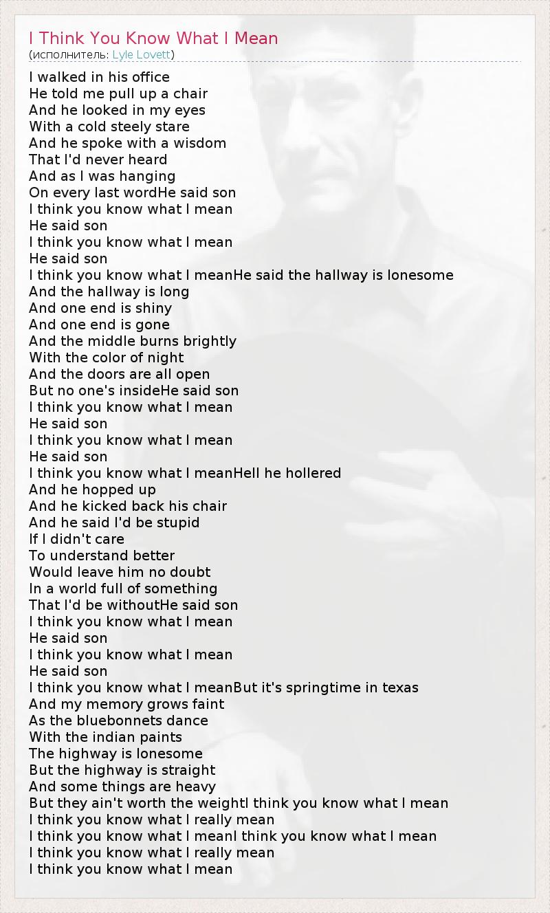ГлавнаяИсполнителиLyle LovettI Think You Know What I Mean
