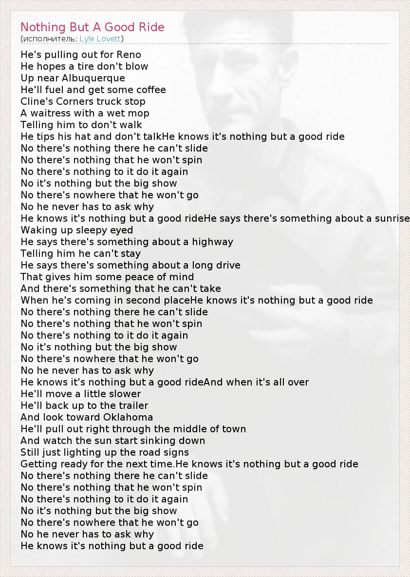 А как ты думаешь, о чем песня "Nothing But A Good Ride" ?