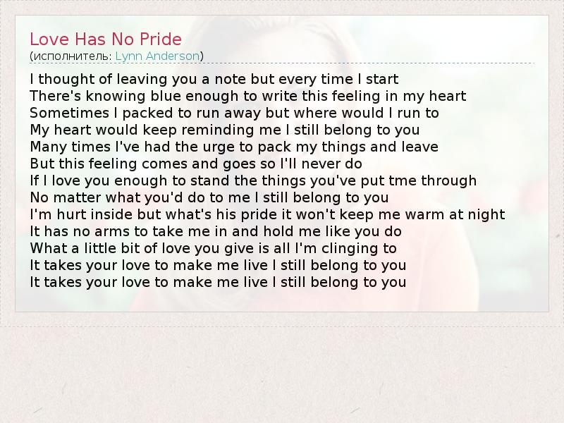 А как ты думаешь, о чем песня "Love Has No Pride" ?