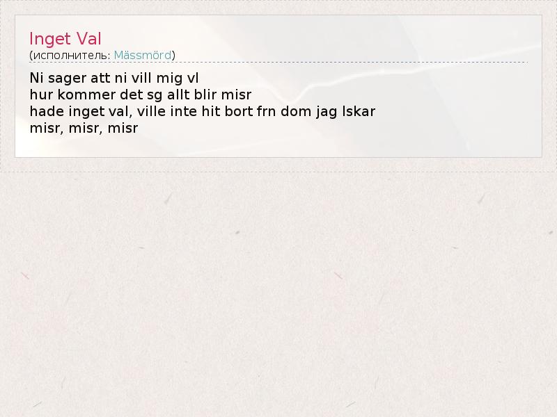 Это интересно:За стартовую точку для Massmord можно взять конец лета 2004 года когда Sonny (Deunga, Desolation) переехал из Мальмо в Хельсингборг и вместе с Ida (Beyond Pink, Vaning 5) собрались с парочкой идей которые очень хотелось воплотить в реальность.К размышлениям подключили Olof (Article Nine, Vaning 5). Решили сбацать группу. Следующим к ним присоединяется Berra (Article Nine). Последними к группе присоединилась Tijana (Beyond Pink) - вторым вокалом,... продолжение