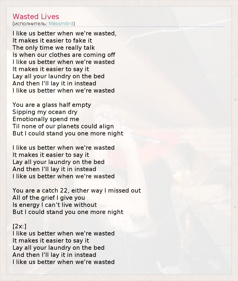 А как ты думаешь, о чем песня "Wasted Lives" ?
