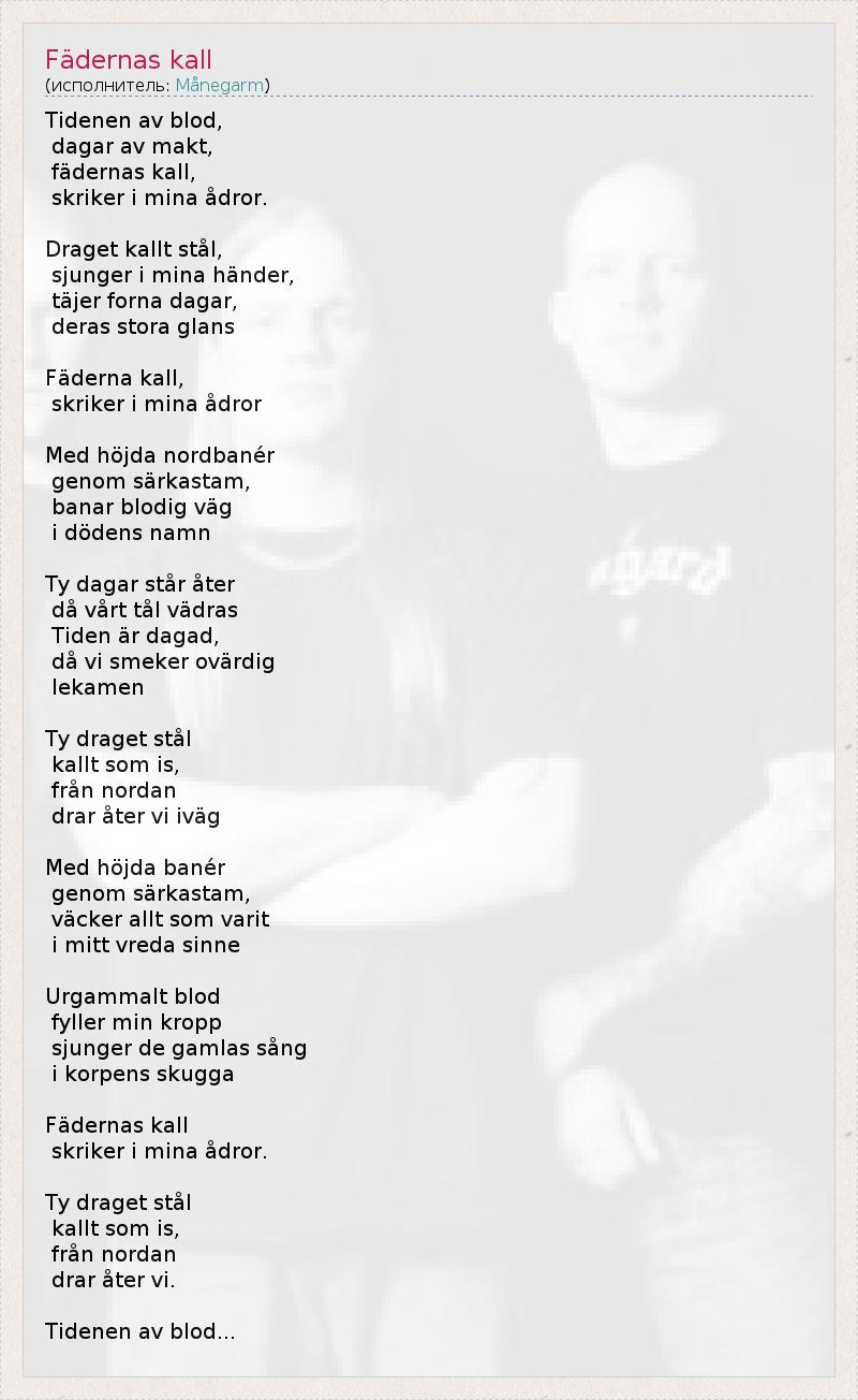 А как ты думаешь, о чем песня "Fädernas kall" ?