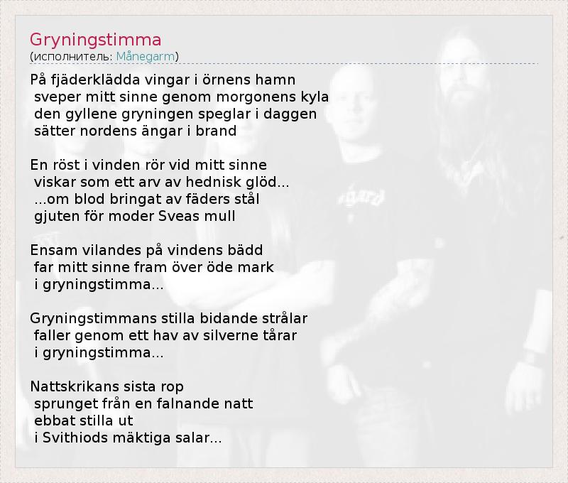 А как ты думаешь, о чем песня "Gryningstimma" ?