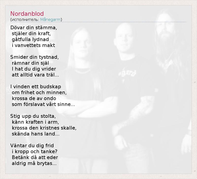 А как ты думаешь, о чем песня "Nordanblod" ?