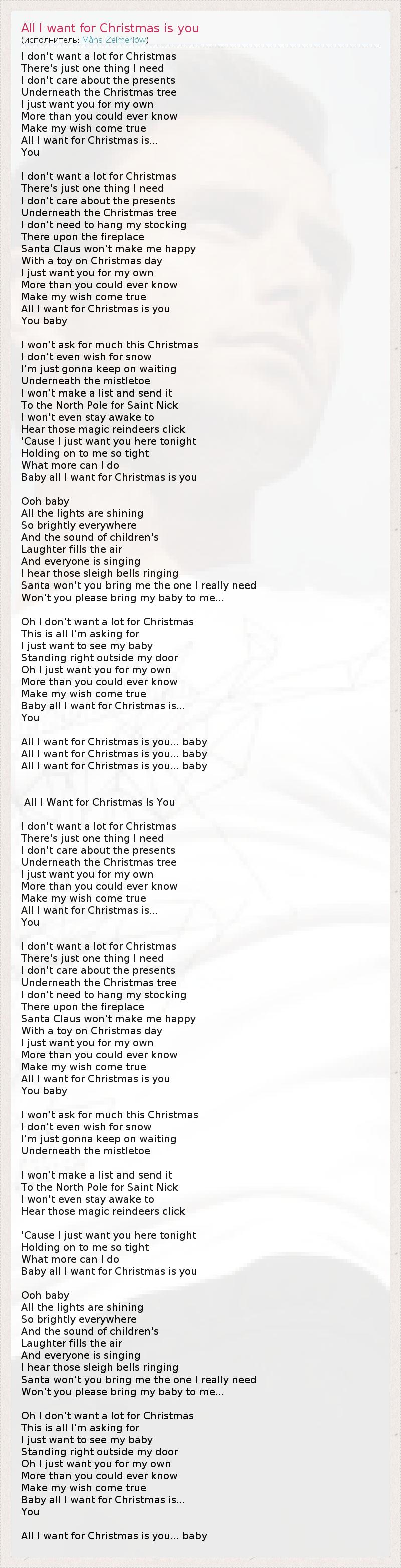 А как ты думаешь, о чем песня "All I want for Christmas is you" ?