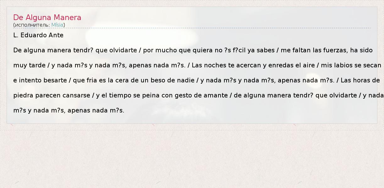 De alguna manera tendr? que olvidarte / por mucho que quiera no ?s f?cil ya sabes / me faltan las fuerzas, ha sido