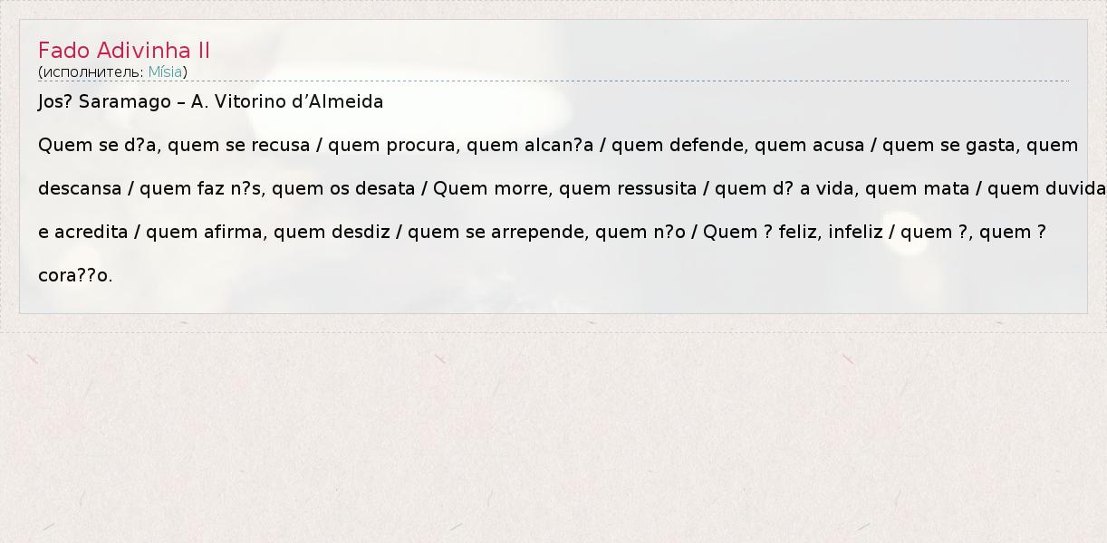 А как ты думаешь, о чем песня "Fado Adivinha II" ?