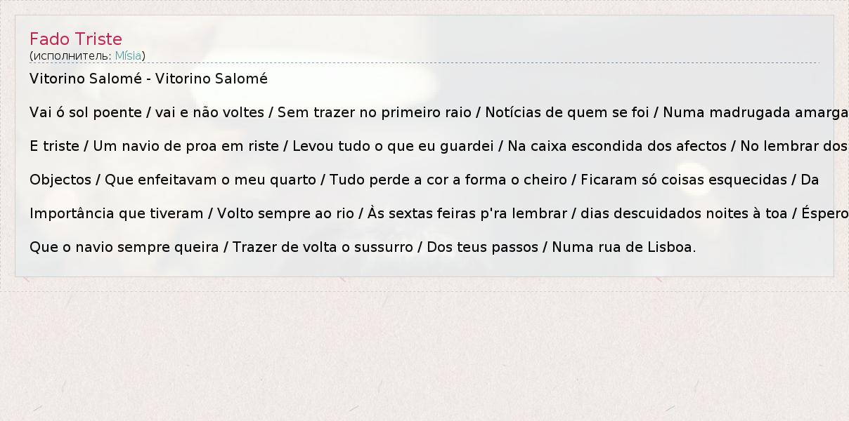 А как ты думаешь, о чем песня "Fado Triste" ?