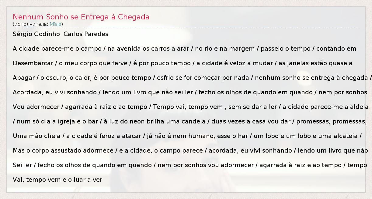 А как ты думаешь, о чем песня "Nenhum Sonho se Entrega à Chegada" ?