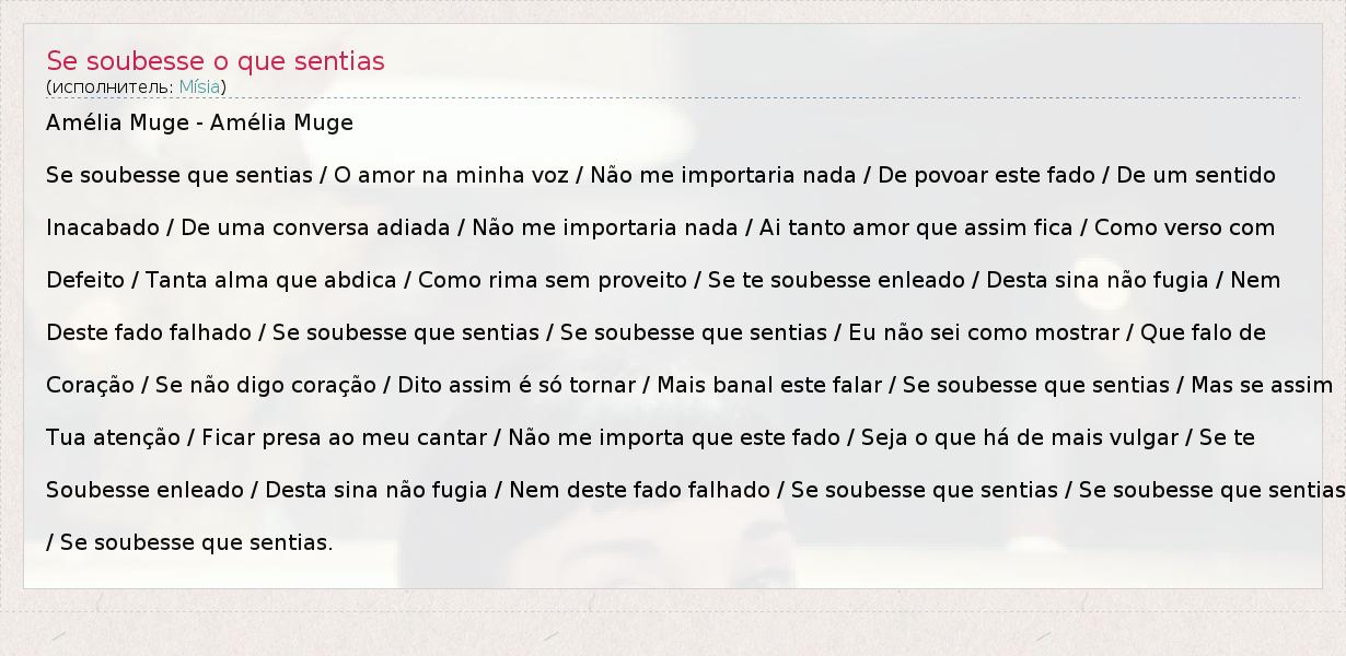 ГлавнаяИсполнителиMísiaSe soubesse o que sentias