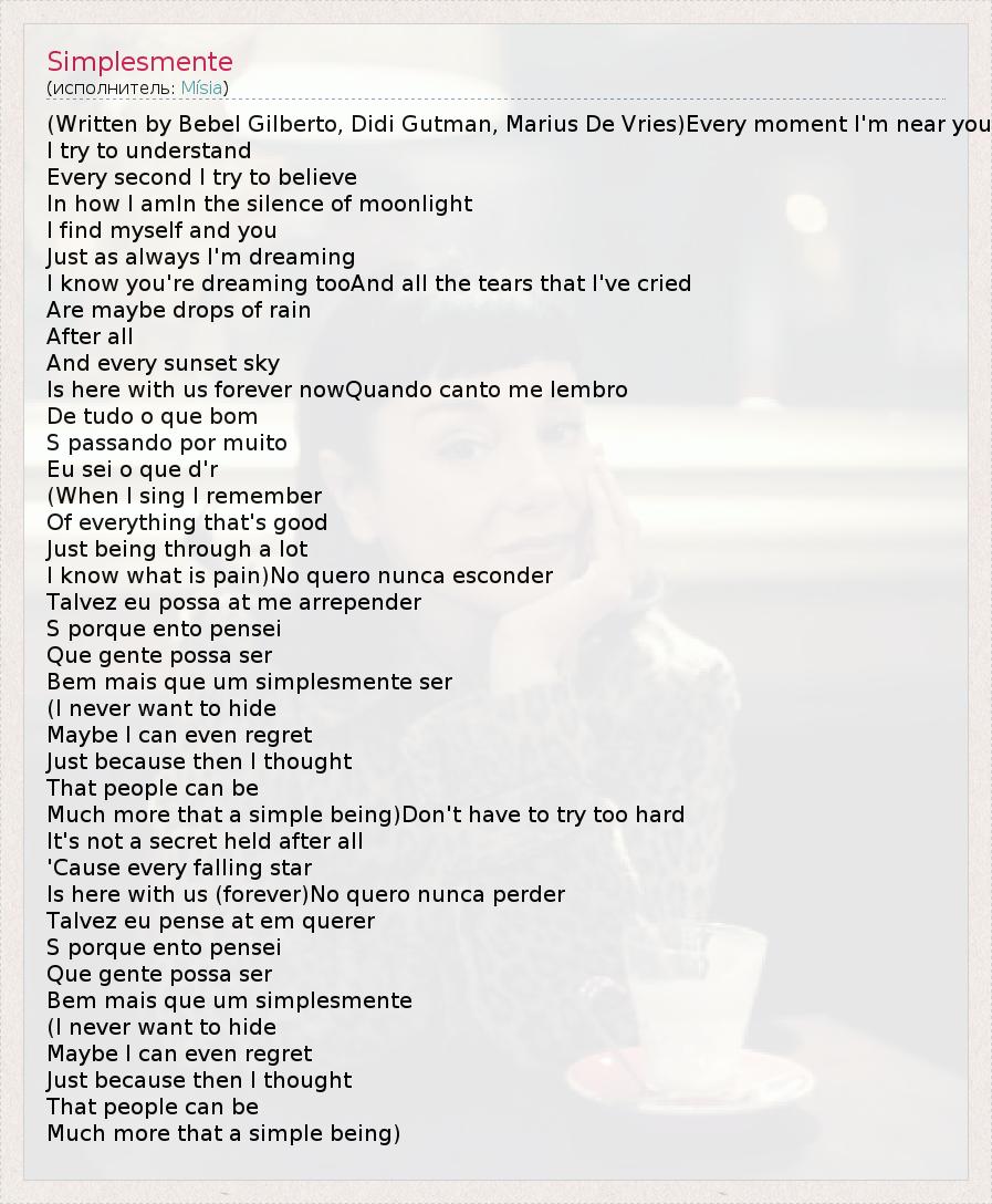 А как ты думаешь, о чем песня "Simplesmente" ?