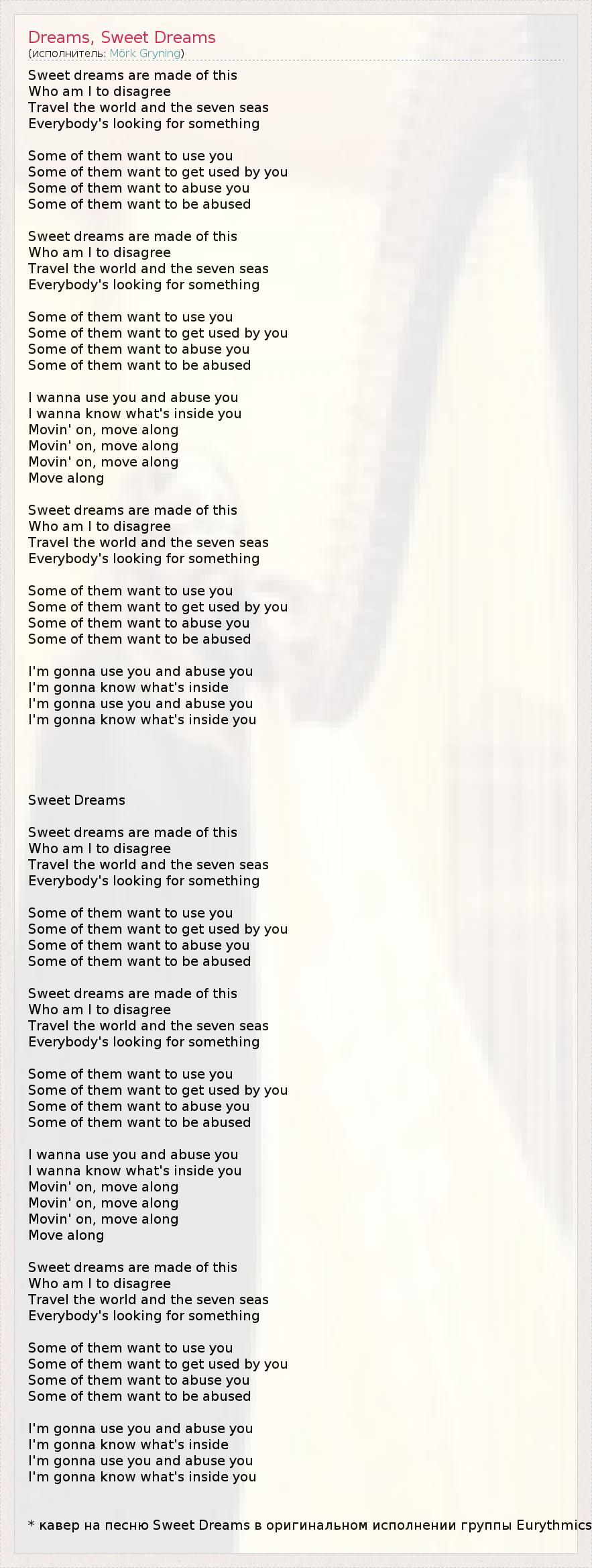 * кавер на песню Sweet Dreams в оригинальном исполнении группы Eurythmics