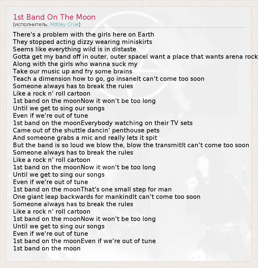 А как ты думаешь, о чем песня "1st Band On The Moon" ?