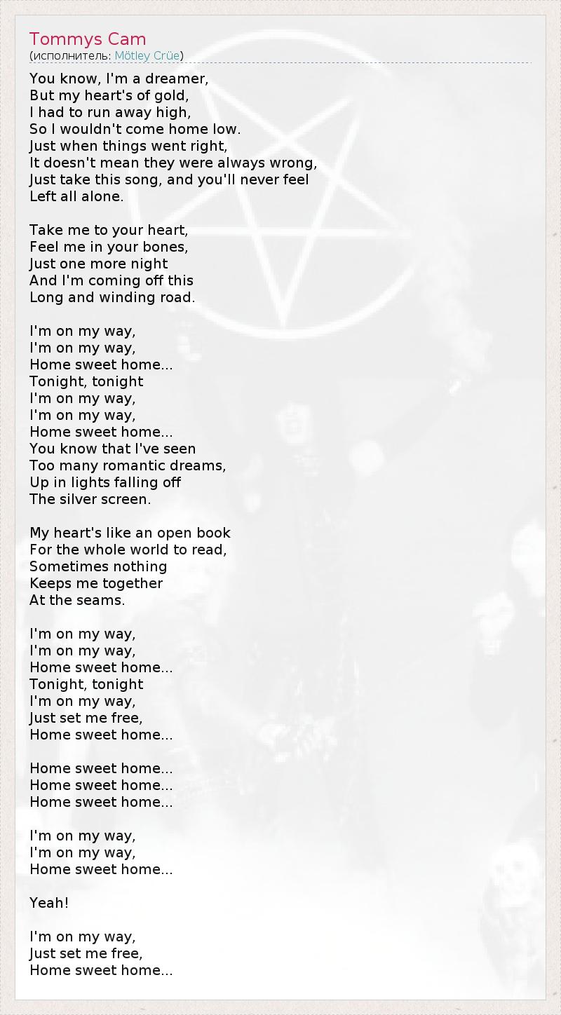 А как ты думаешь, о чем песня "Tommys Cam" ?
