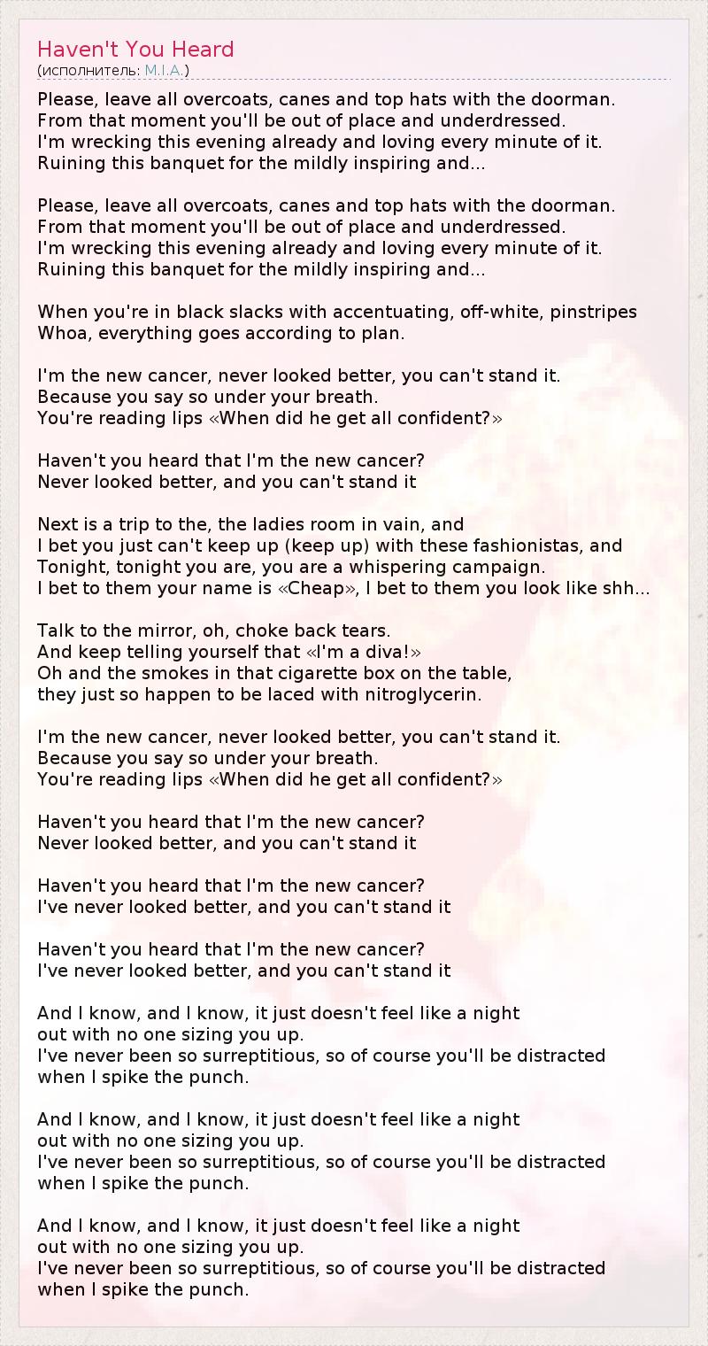 А как ты думаешь, о чем песня "Haven't You Heard" ?