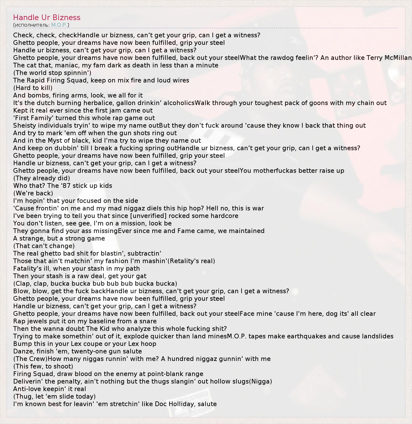 А как ты думаешь, о чем песня "Handle Ur Bizness" ?