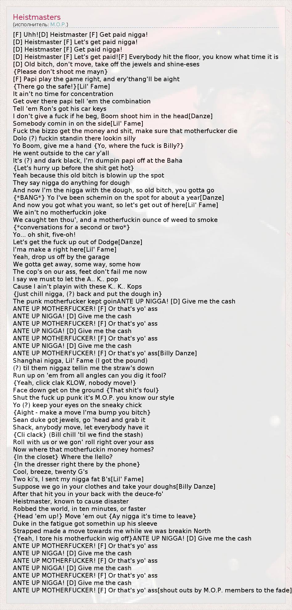 [F] Uhh![D] Heistmaster [F] Get paid nigga!